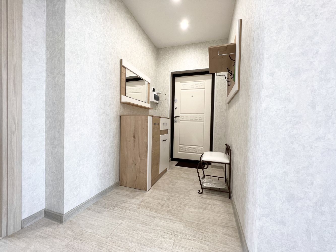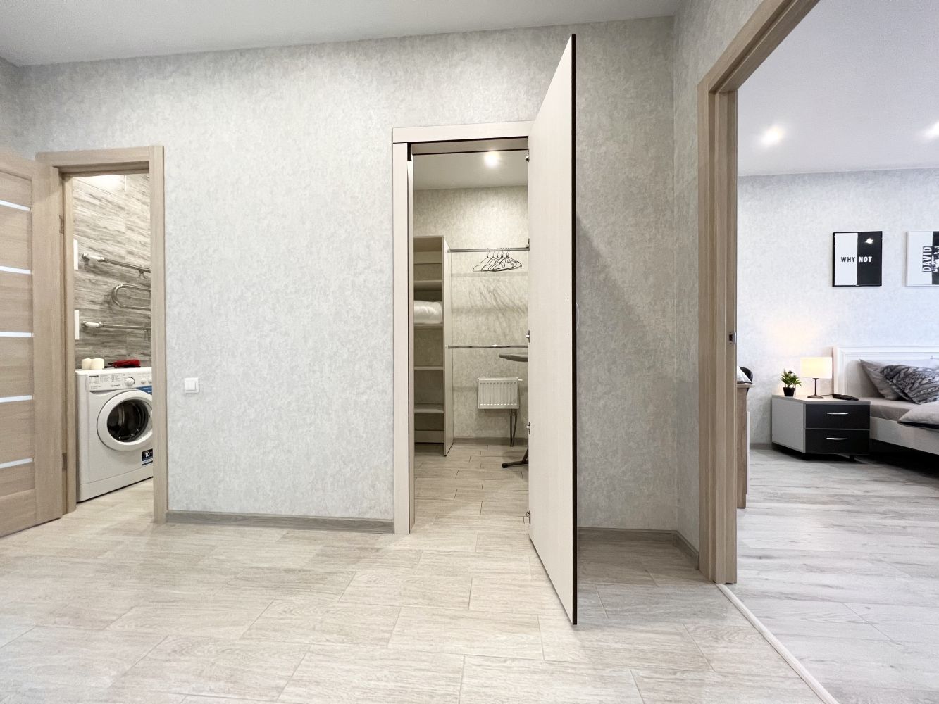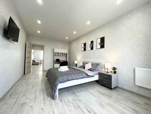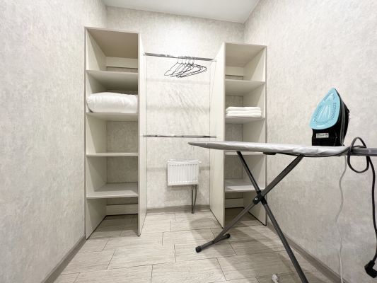 В квартире современная мебель, новая сантехника, натяжные потолки, стеклопакеты, хорошая шумоизоляция, фен, утюг, гладильная доска, сушилка для белья, стиральная машина. Есть все необходимое для проживания.