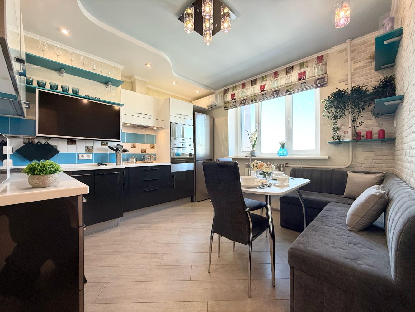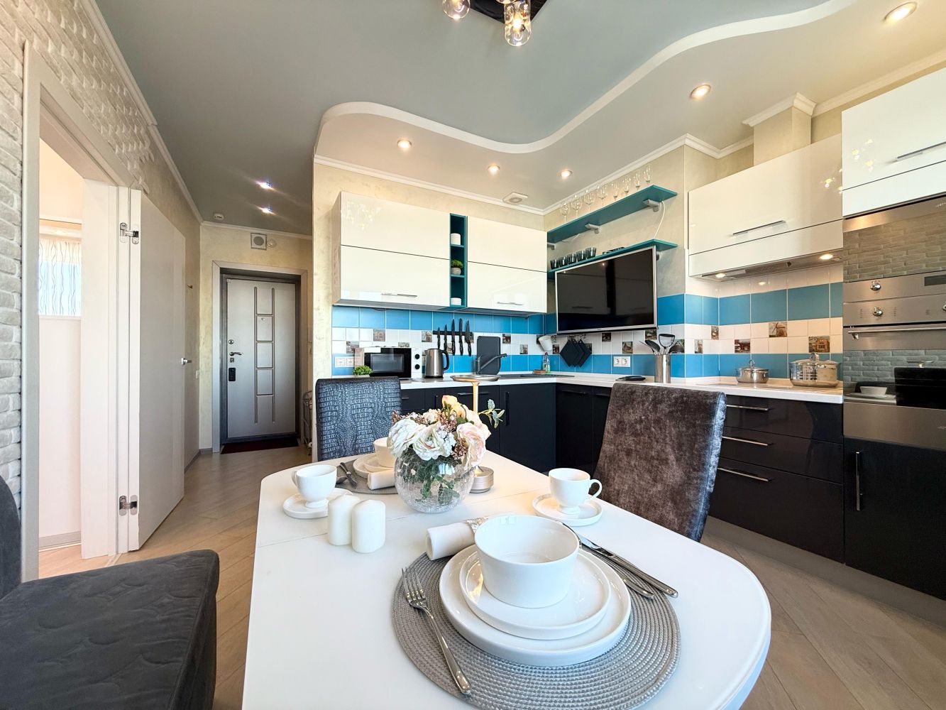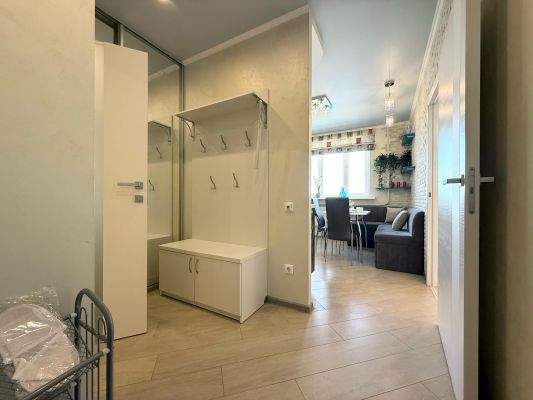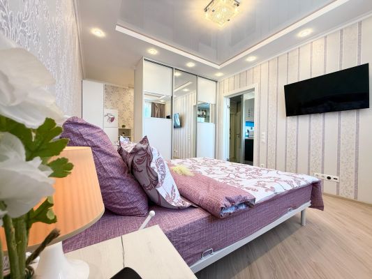 В квартире современная мебель, новая сантехника, натяжные потолки, стеклопакеты, хорошая шумоизоляция, фен, утюг, гладильная доска, сушилка для белья, стиральная машина, кондиционер. Есть все необходимое для проживания.